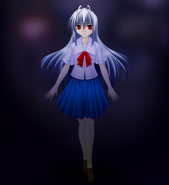 体系は小柄、非巨乳。髪はロングで少し青みがかっています。