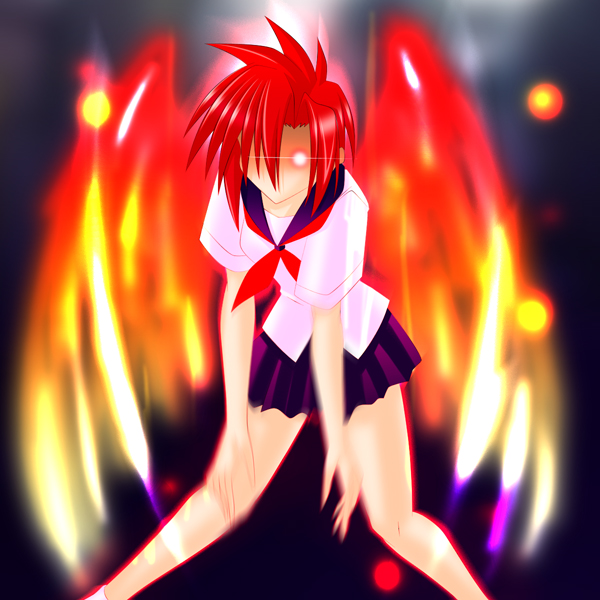 お蔭で精神は朱雀に半分奪われて、背中から朱雀が漏れてます。
